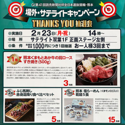 熊本G1 場外・サテライトキャンペーン THANKS YOU 抽選会開催!!