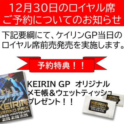 【先着10名様】12月30日 ロイヤル席の予約特典付き前売発売についてお知らせ