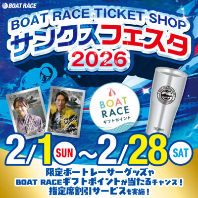 2月1日より、ボートレーサーの限定グッズやロイヤルルームの割引等に使えるポイントなど豪華景品が当たるボートレースチケットショップ サンクスフェスタ2026を開催します!!