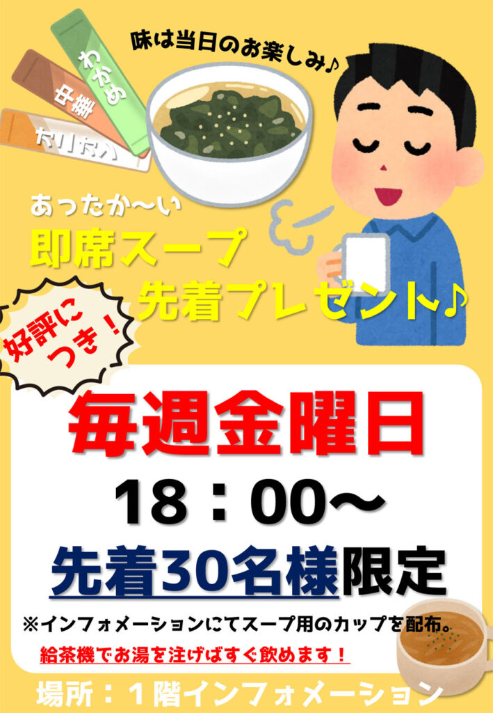 ご好評につき12月以降も開催!あったか〜いスープをプレゼント♪