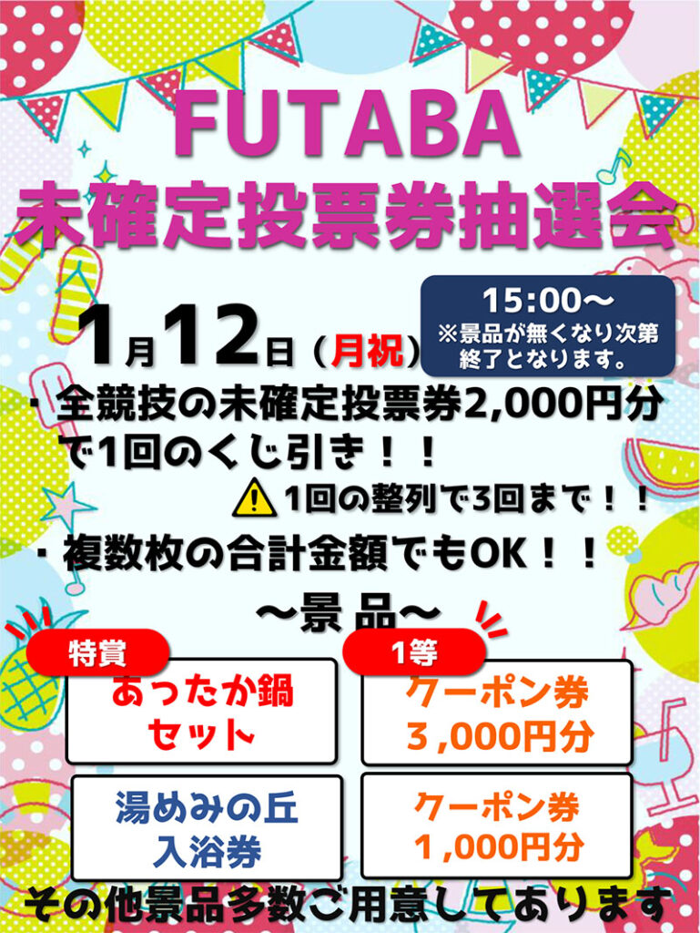 下記日程でFUTABA未確定投票券抽選会を開催します。