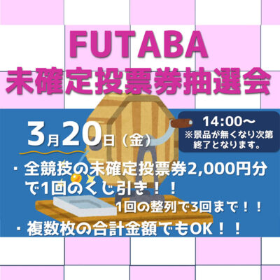 ボートレース戸田の未確定舟券500円以上をインフォメーションでご提示いただくと