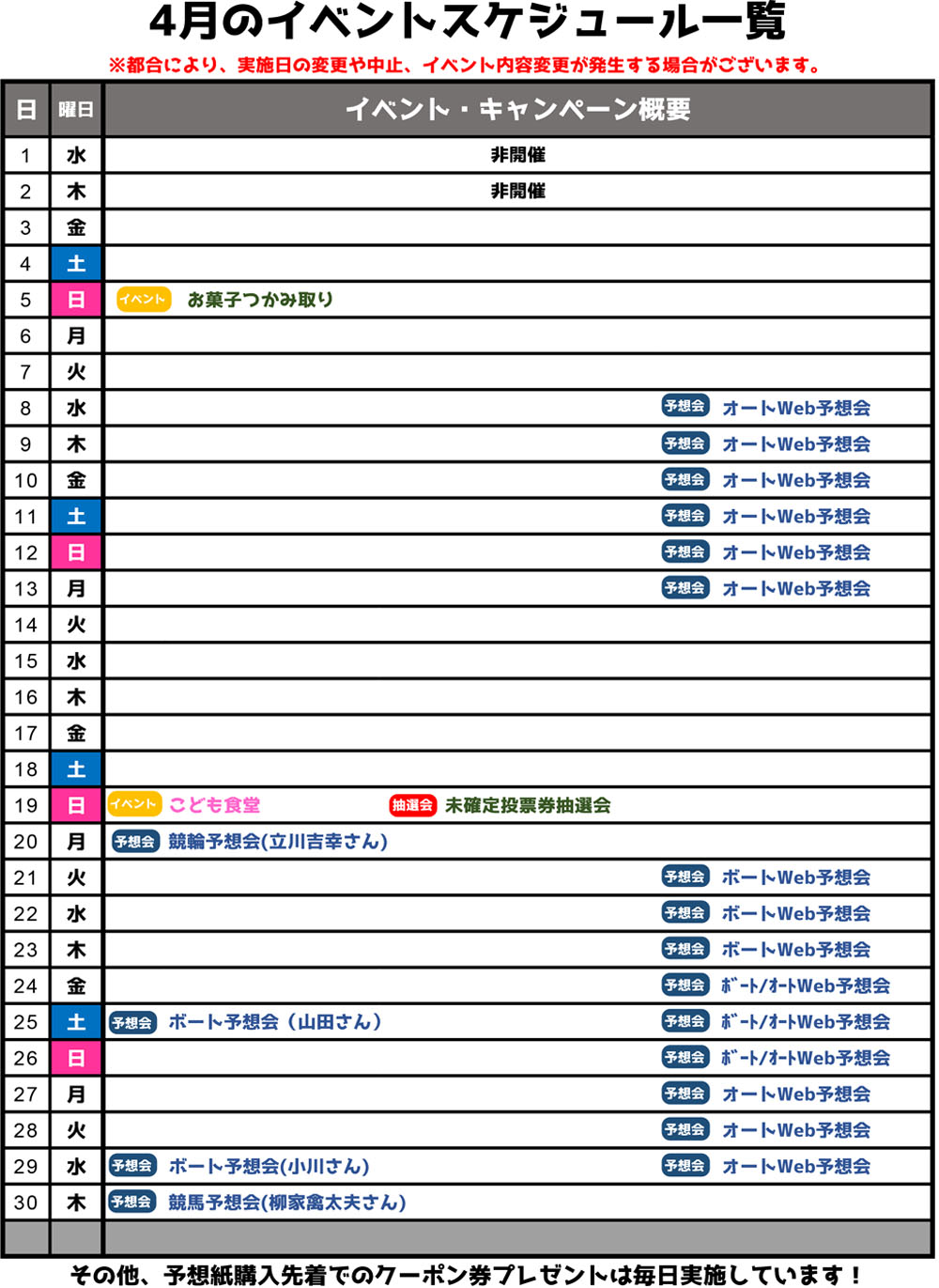 レストラン利用で競輪・ボートレースが楽しめるクーポンプレゼント♪3月の配布日程